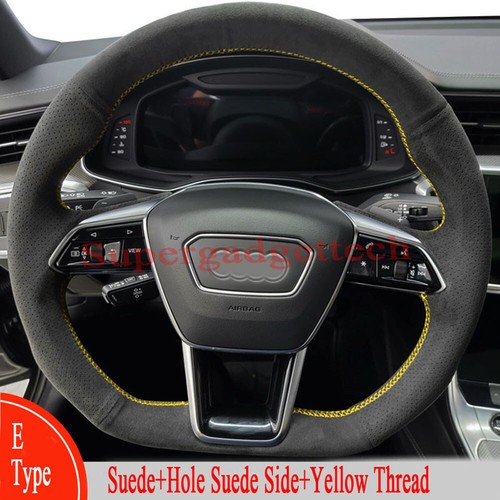Black Suede Yellow Thread Steering Wheel Stitch On Wrap Cover For Audi A7 18 22 Ebay